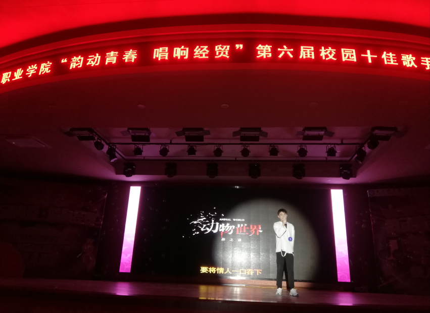 5月18日晚,我院第六届“韵动青春、唱响经贸”校园十佳歌手大赛决赛在学术报告厅举行。学院院长助理杨诚,各职能部门负责人、二级学院院长、书记、辅导员以及600名学生共享此次视听盛宴。