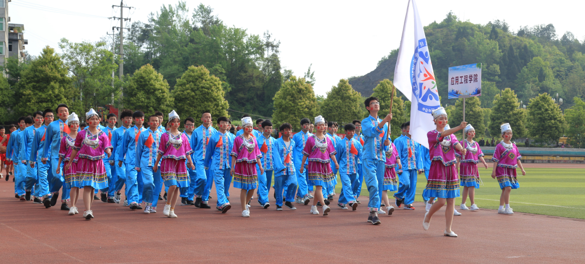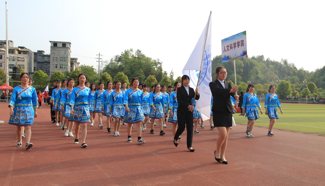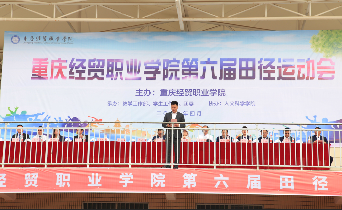 4月18日,学院第六届田径运动会开幕式在田径运动场举行,董事会领导、学院领导、各部门、二级学院主要负责人以及来自各二级学院的1000余名运动员和近2000名同学参加开幕式。黔江团区委副书记石军莅临现场指导学院运动会。开幕式由学院院长助理庞永红主持。