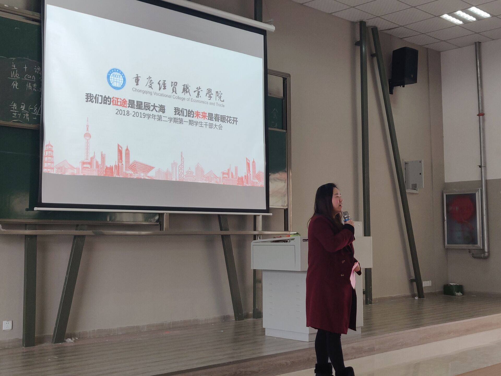 2019年2月27日下午,我院2018-2019学年第二学期首次学生干部大会在勤学厅举行。学生工作部姚樊樊部长、院团委办公室颜希主任及200余名学生干部参加会议。大会由团委书记张立主持。