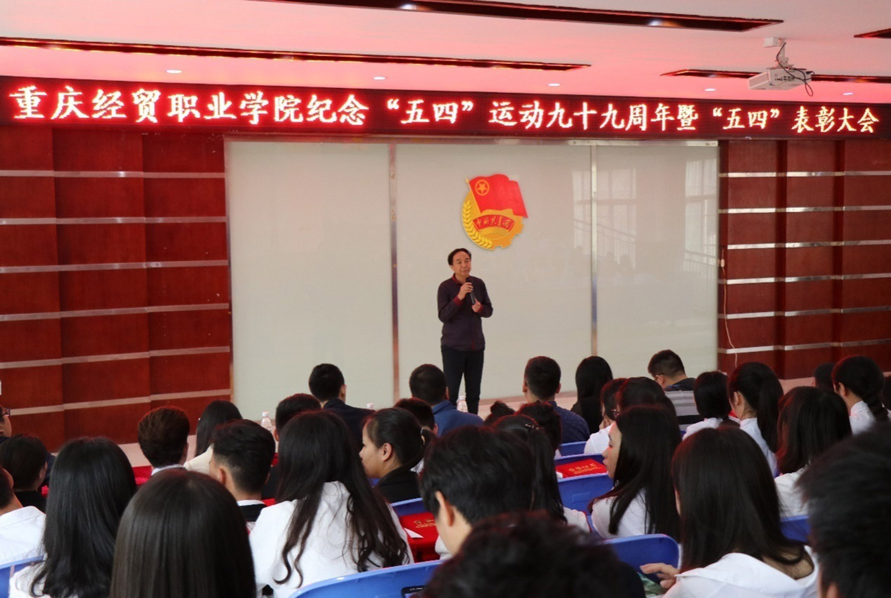 院团委讯。为纪念“五四”运动99周年以及表彰先进,树立典型。我院纪念“五四”运动99周年暨“五四”表彰大会在一教113教室隆重举行。学院副院长谈建设、学生工作部副部长姚樊樊、院团委书记张立、各二级学院团总支书记以及300余名师生代表参加了大会。