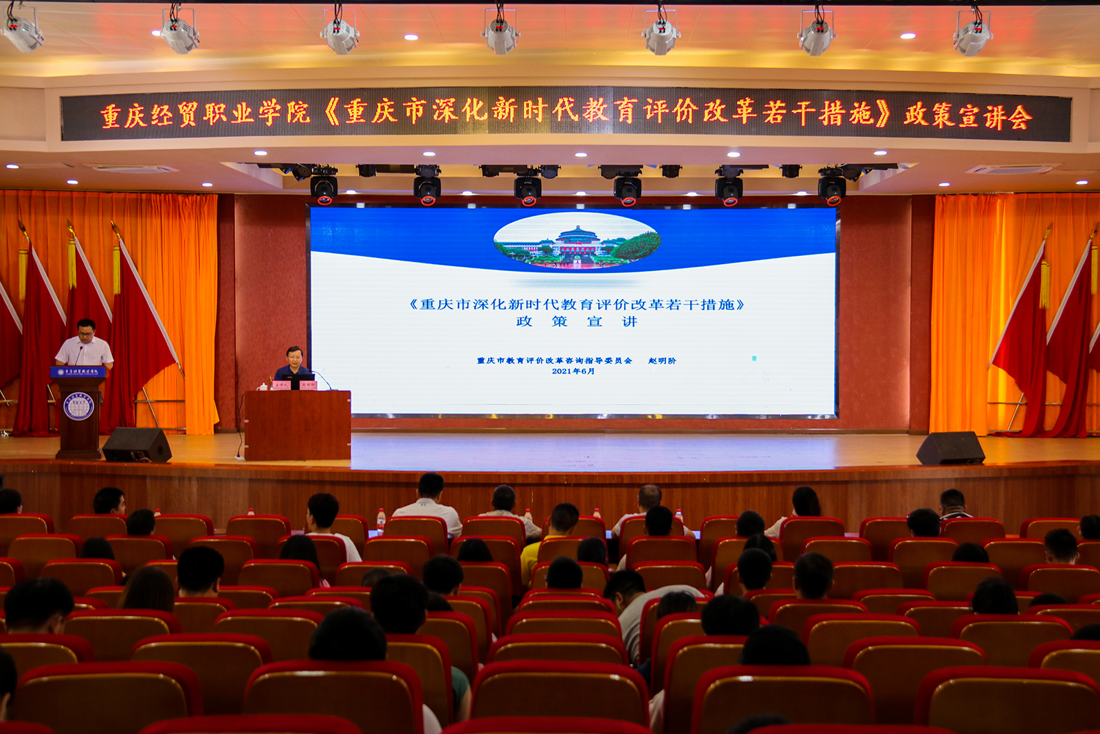 6月25日,我院组织召开了《重庆市深化新时代教育评价改革若干措施》(以下简称《若干措施》)政策宣讲会。重庆交通大学副校长赵明阶教授应邀来校进行宣讲。